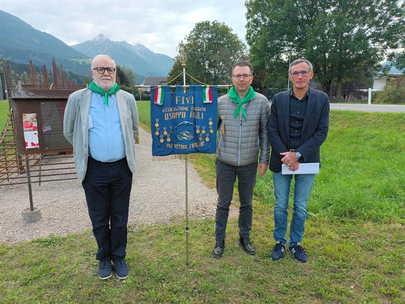 A seguire l’intervento di Roberto Volpetti, accompagnato da Jurij Cozianin con il labaro. Il presidente dell’APO ha ringraziato l’amico Pirker del gradito ed importante invito, sottolineando il valore della collaborazione tra le due associazioni, confermata in occasione della presentazione del libro di Cozianin dedicato ai partigiani stranieri della Osoppo, avvenuta a Udine lo scorso aprile.