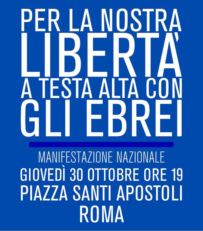 L'APO aderisce e sostiente la manifestazione "PER LA NOSTRA LIBERTA' A TESTA ALTA CON GLI EBREI" che si tiene oggi a Roma in piazza Santi Apostoli e che ha visto l'adesione di numerose associazioni, partiti